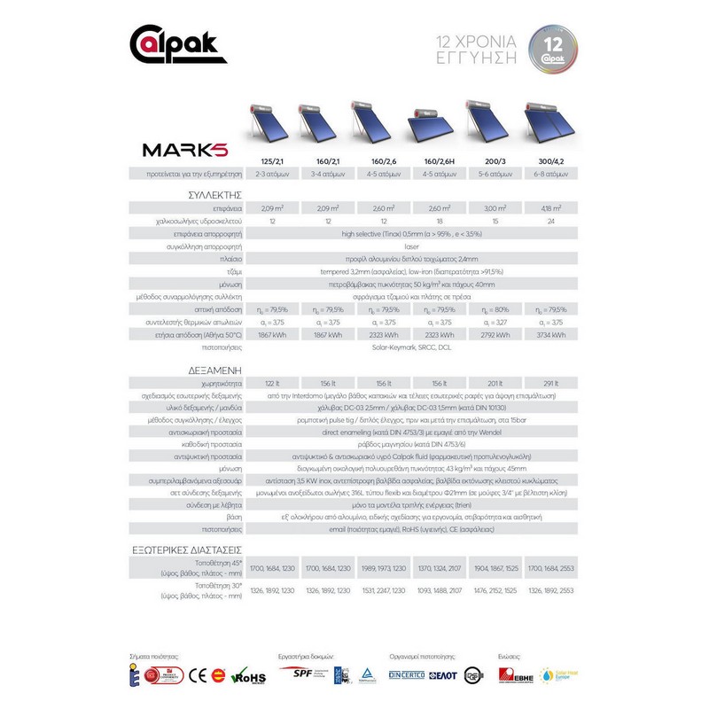 Calpak Mark 5 Ηλιακος Θερμοσιφωνας 160 λιτρων Glass Διπλης Ενεργειας με 2.1τ.μ. Συλλεκτη